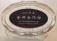 臺(tái)山康橋溫泉度假村頒發(fā)的 “2008年度最佳合作伙伴” |