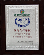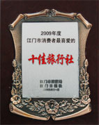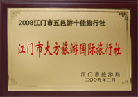 江門市旅游局頒發(fā)的 2008江門市五邑游十佳旅行社 |