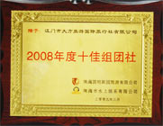 珠海圓明新園旅游有限公司頒發(fā)的“2008年度十佳組團(tuán)社” |