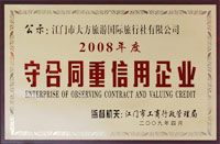 江門市工商行政管理局頒發(fā)的 2008年度“守合同重信用企業(yè)” |
