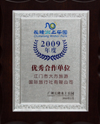 廣州長隆歡樂世界頒發(fā)的 2008年度暑期最佳組團(tuán)社 |