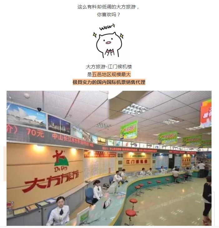 地址:廣東省江門市蓬江區(qū)建設(shè)三路19號(hào)2幢緯豐廣場(chǎng)12樓 旅行社的名稱:江門市大方旅游國(guó)際旅行社有限公司 許可證編號(hào):L-GD-CJ00121