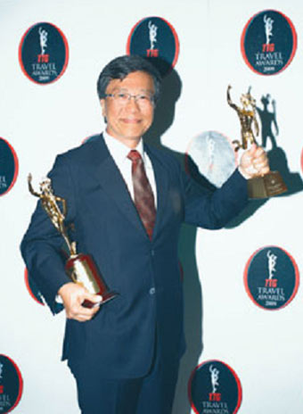 麗星郵輪主席兼行政總裁丹斯里林國泰手持“年度旅游企業家”和“TTG旅游大獎榮譽堂”獎座