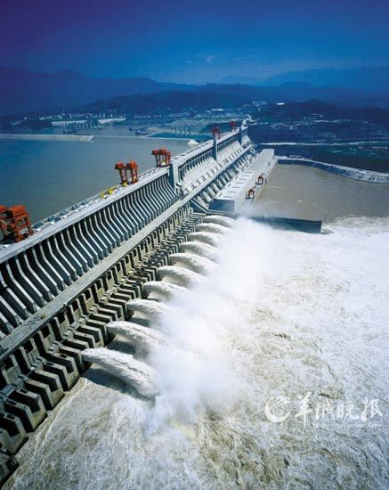 長江大壩泄洪(由長江三峽旅游發展有限責任公司提供)
