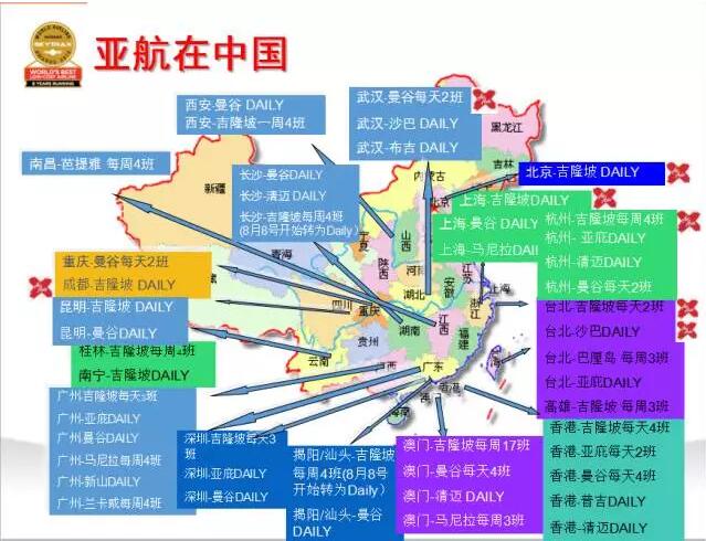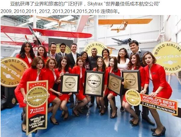 亞洲航空是馬來西亞第二家國際航空公司,也是亞洲地區首家低成本航空。截止到目前,約有200條國內及國際航線,覆蓋20多個國家。亞航一直致力于將低成本飛行帶到新的高度,使“現在人人都能飛”的信念成為現實,并連續8年獲得“世界最佳低成本航空”稱號。