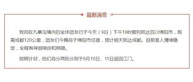 江門大方旅游迅速應對九寨溝7級地震,全體團友已安全撤離震中災區