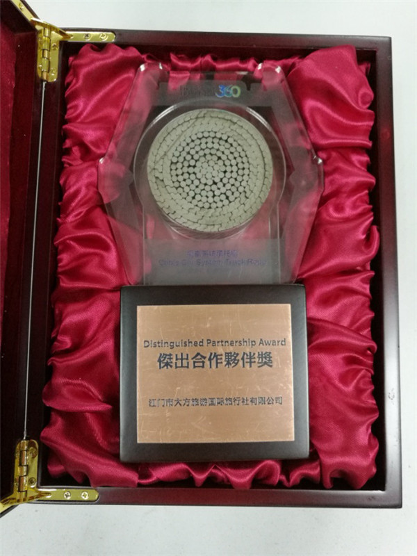 我社榮獲香港昂坪360“杰出合作伙伴獎”。本次獎杯非常特別,是由運行十年之久的昂坪360纜車系統承托纜繩制作而成,具有非同凡響的意義!