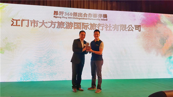 晚會為合作代理商頒出各大獎項,恭喜我社榮獲香港昂坪360“杰出合作伙伴獎”。大方旅游將繼續在江門五邑地區推廣昂坪360相關產品。