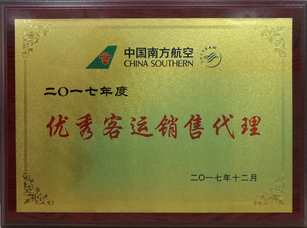 日前,在廣州召開的“2017年南航廣州地區(qū)渠道年會”上,我司再次獲得中國南方航空股份有限公司頒發(fā)《2017年度優(yōu)秀客運(yùn)銷售代理》獎。