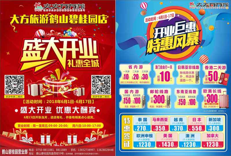 為慶祝新店開張,結合“大方旅游•放心游”的理念,該店推出了一系列放心游的產品