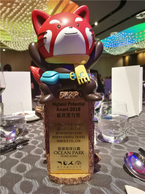 在上周(3月12日)的香港海洋公園“Top Agent Thank You Party”上,大方旅游實力榮獲香港海洋公園“2018最具潛力獎”!