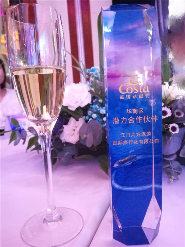 隨后在3月14日“歌詩達郵輪華南區2018年度頒獎盛典”上,大方旅游榮獲歌詩達郵輪“華南區潛力合作伙伴”!